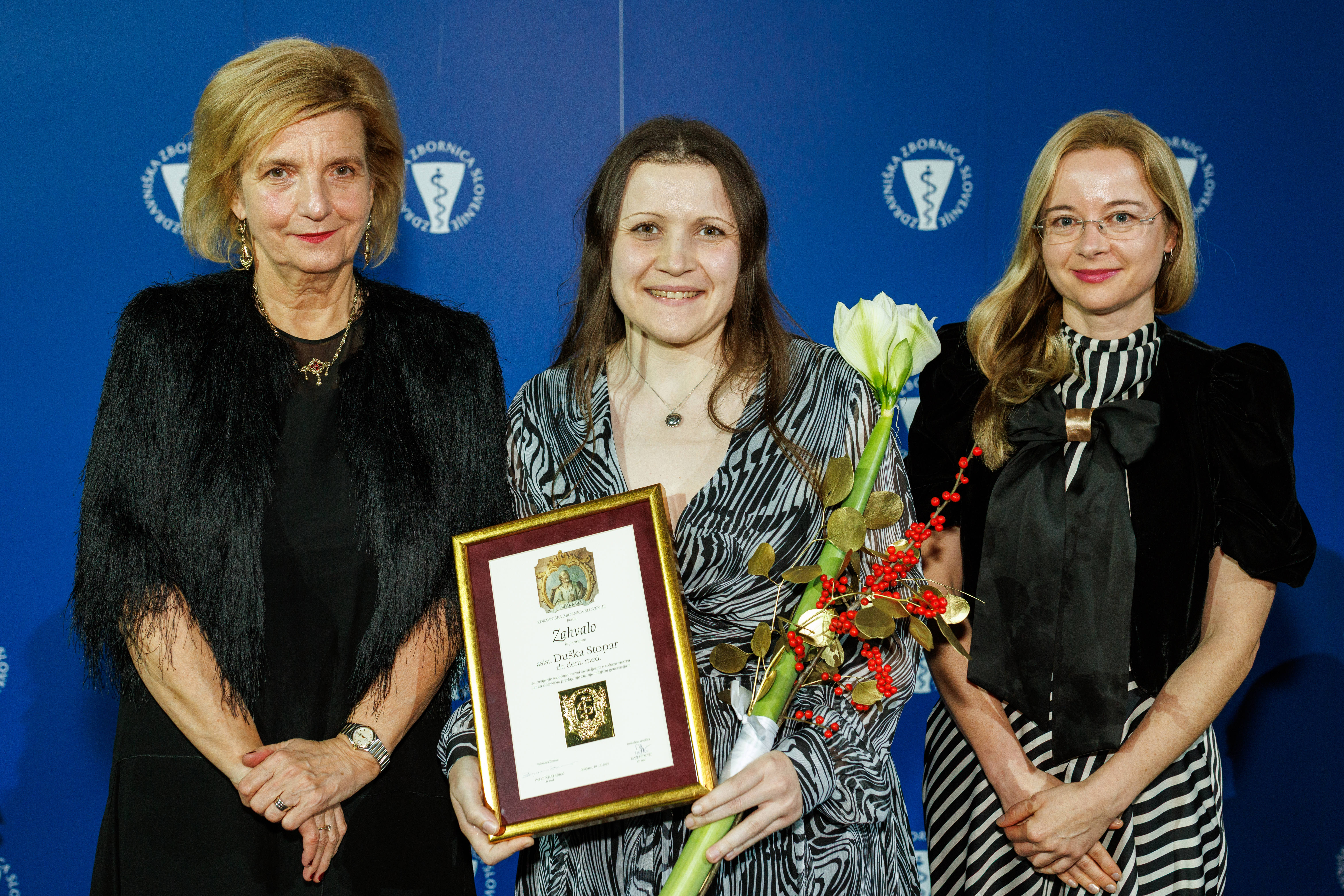 Zahvalo Zdravniške zbornice Slovenije je prejela asist. Duška Stopar, dr. dent. med., za uvajanje sodobnih metod zdravljenja v zobozdravstvu ter za nesebično predajanje znanja mlajšim generacijam.