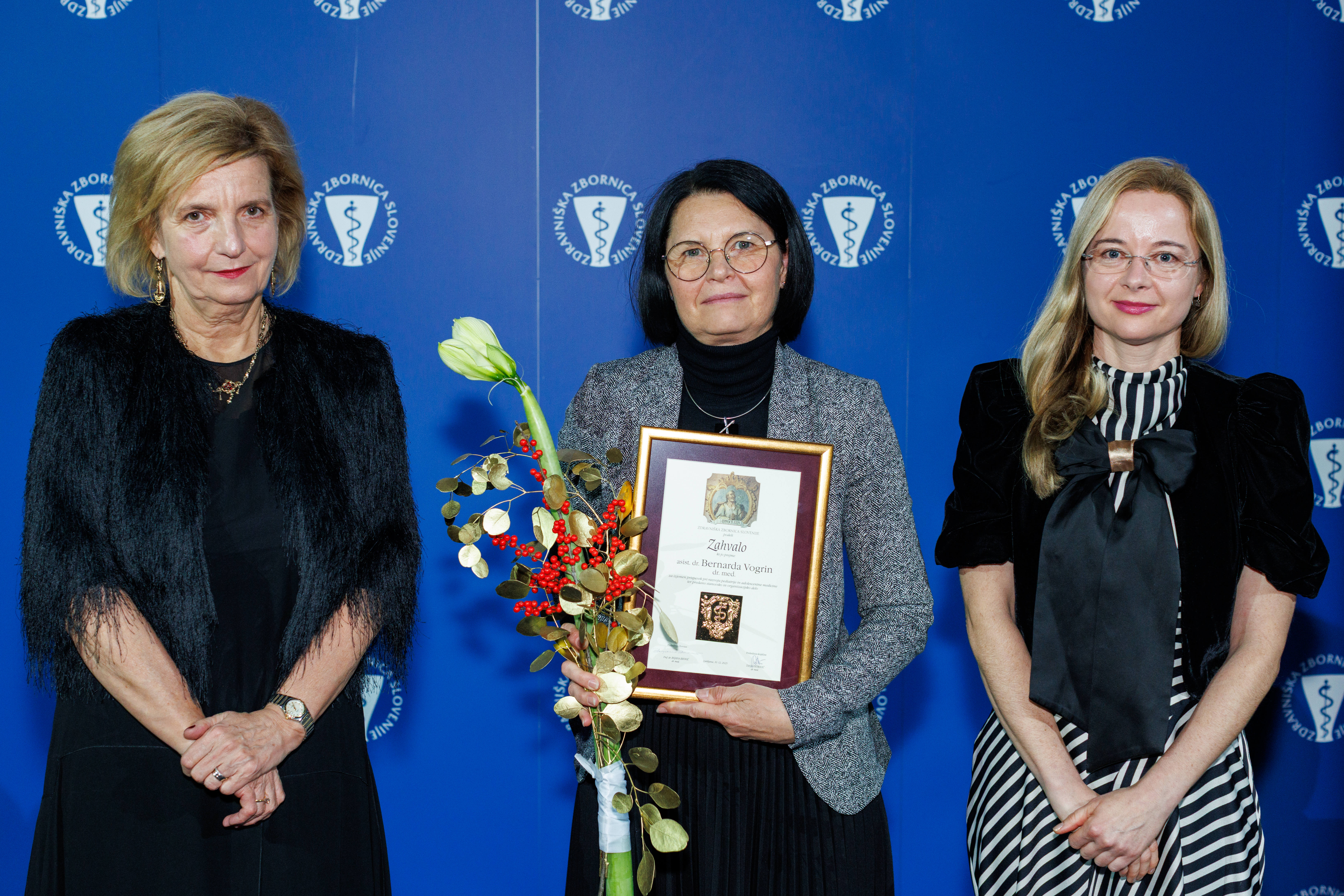 Zahvalo Zdravniške zbornice Slovenije je prejela asist. dr. Bernarda Vogrin, dr. med., za izjemen prispevek pri razvoju pediatrije in adolescentne medicine ter predano stanovsko in organizacijsko delo.