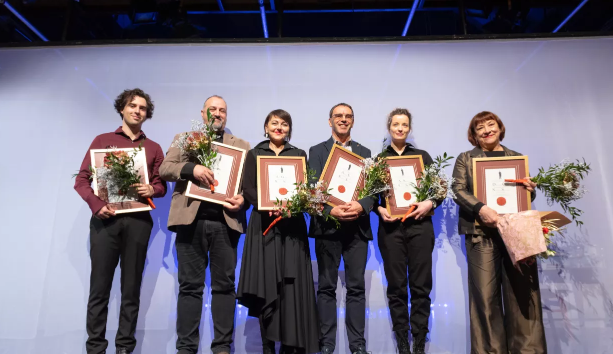 VIR: Gorensjki glas: Prejemniki nagrad Sklada Staneta Severja: (z leve) Peter Podgoršek, Jure Šimonka (na fotografiji njegov oče), Anja Garbajs, Andrej Šubic, Ajda Smrekar in Damjana Černe / Foto: Matic Zorman